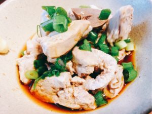 ・ポン酢とネギで。しょうがやニンニクのすりおろしと一緒に。