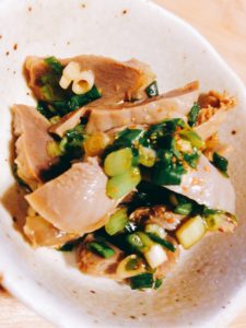 そこにあった「スタミナ漬け」というおつまみが、安くて美味しかった。鶏の砂肝をボイルして、スライスして、ポン酢とネギで和えただけ。