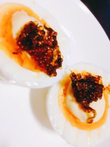 ゆで卵は、シンプルだけど美味しいですね。キャビアもどきの甘辛い味がピッタリで、お弁当にも入れています。