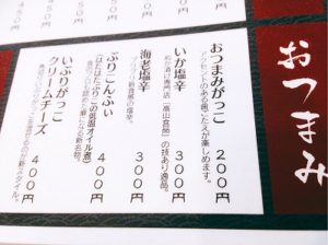 おすすめは「いぶりがっこ クリームチーズ」ですが、家でよくやっていたので、今回はパス。(いぶりガッコを小さくカットして、クリームチーズといただきます。これにドライのイチジクを合わせるのがオススメです♪)