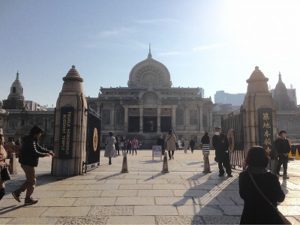 帰りに、築地本願寺に寄ってみました。