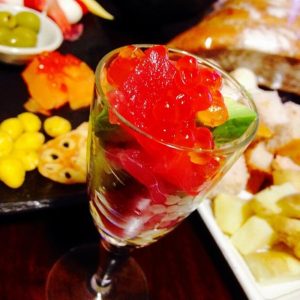 小さいグラスに、マグロとアボカド、いくらを適当に盛り、わさび醤油をかけていただきました。簡単だけど、いわゆるインスタ映えする一品です(笑)