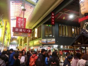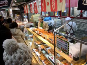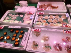 市場でやりたいのが、ワカコがやってた「市場で魚介を立ち食い!」ってやつです。築地場外の方が食べ歩きの種類は多いし、上野のアメ横にもお気に入りの魚介で立ち飲めるお店もあるけど、
